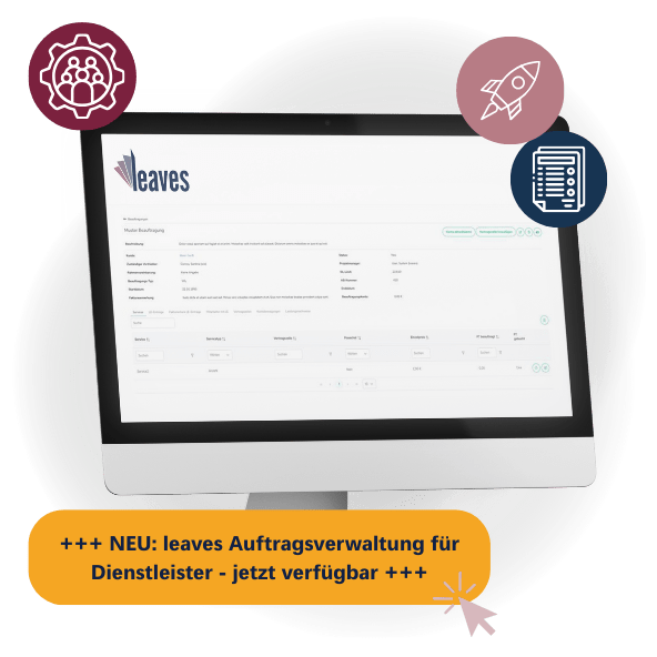 Unsere cloud– und KI-basierte Softwarelösung ermöglicht die lückenlose Erfassung und Abrechnung Ihrer vielfältigen Dienstleistungen und Managed Services. leaves schafft die Grundlage für transparente Abläufe, verlässliche Abrechnungen und fundierte Entscheidungen. Unsere Lösung unterstützt Teams dabei, Dienstleistungsaufwände strukturiert zu erfassen und wirtschaftlich zu steuern.